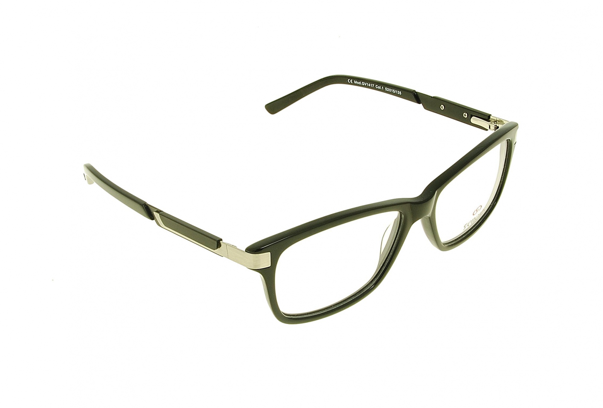 Front okularów wykonano z czarnego połyskującego tworzywa. Element łączący front z zausznikami zrobiono z srebrnego metalu z satynowym poblaskiem. Zauszniki to ciekawa kombinacja metalu w kolorze czarnym i srebrnym w połączeniu z czarnym, połyskującym tworzywem. Są to niezwykle uniwersalne oprawy, które mogą posłużyć zarówno do podstawowych soczewek korekcyjnych, jak i do soczewek progresywnych, czy przeciwsłonecznych.