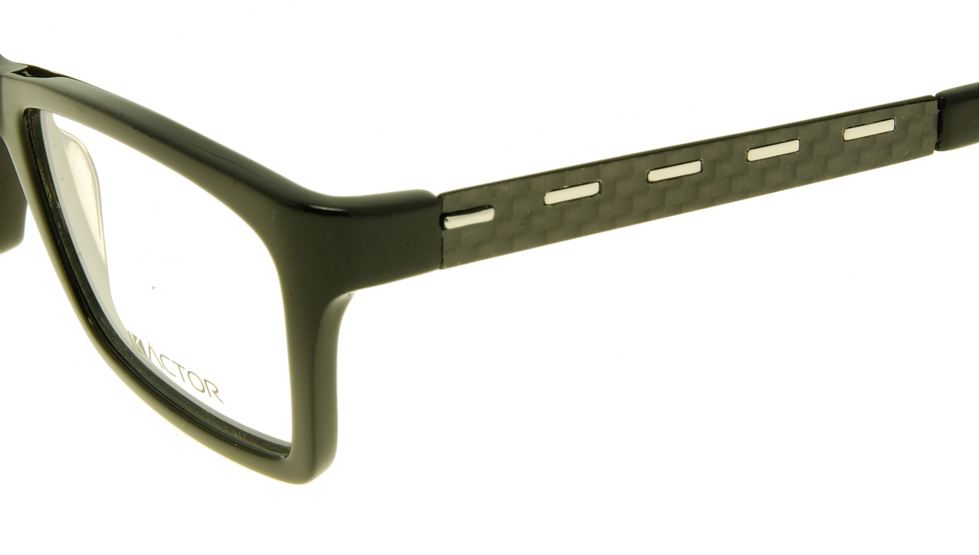 Oprawa wykonana została z połyskującego tworzywa sztucznego oraz z włókna węglowego. Front jest z plastiku, ma kolor czarny. Zausznik ma kolor czarny, jest wykonany z włókna węglowego, umieszczone zostały na nim poziome paski srebrnego metalu – pierwszy jest wypukły, reszta jest wtopiona w oprawę. Na końcu umieszczona została nakładka z połyskliwego tworzywa sztucznego, w kolorze frontu.