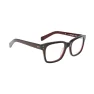 Oprawa Kaleos wykonana jest w całości z błyszczącego półtransparentnego tworzywa. Front oprawy jak i zauszniki zaprojektowane są w pięknym, głębokim bordowym kolorze. Dodatkowym elmentem ozdobnym na froncie oraz na zausznikach są nity w kolorze matowego złota. Oprawa ta pasuje idealnie do wielu kształtów twarzy.